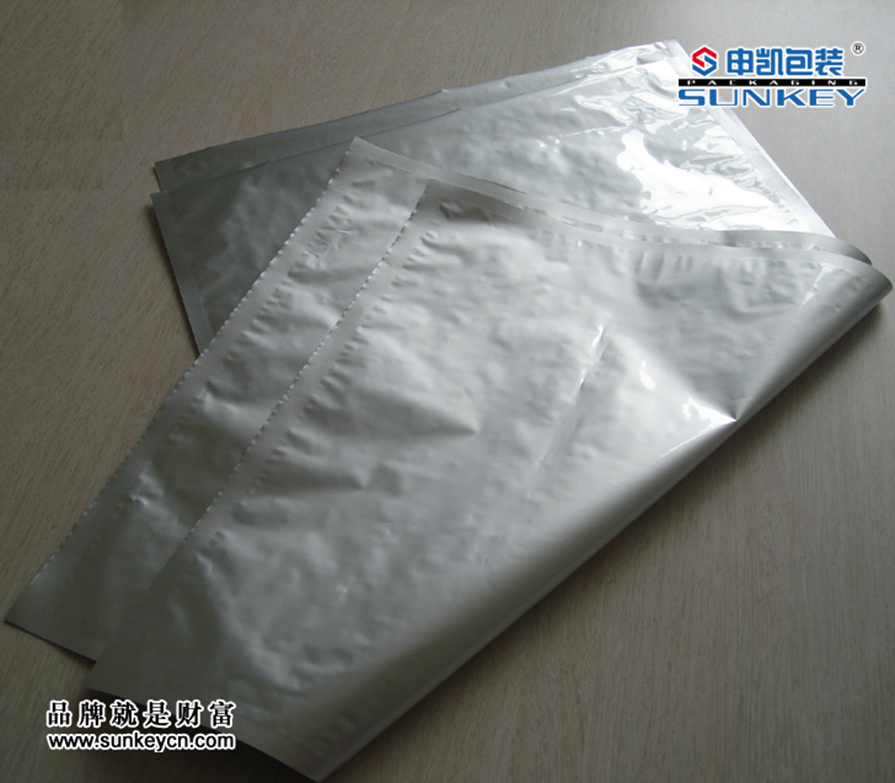 材質(zhì):1、PET/AL/PE 2、PET/NY/AL/PE(20KG包裝以上,采用特殊PE配方)