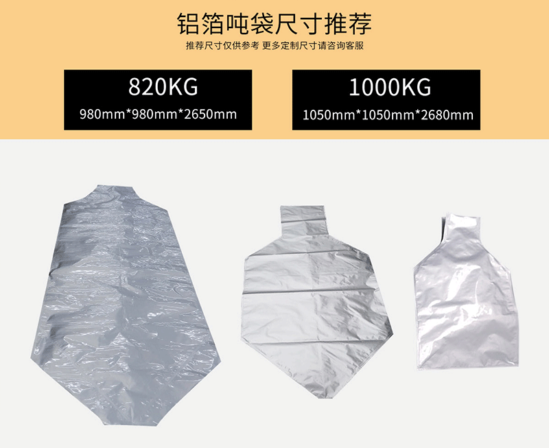 噸袋鋁箔袋常用規(guī)格推薦: