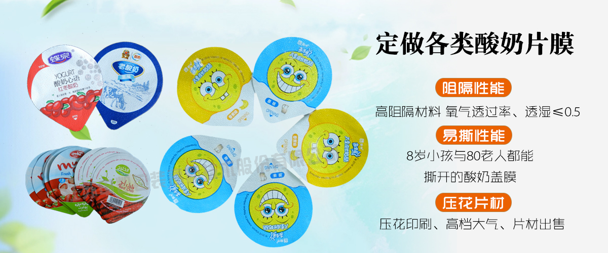在包裝工業(yè)發(fā)展的基礎(chǔ)上,物品的包裝也得到相應(yīng)的發(fā)展。從簡(jiǎn)單紙包裝,到單層塑料薄膜包裝,發(fā)展到復(fù)合材料的廣泛使用。包裝蓋膜能使包裝內(nèi)含物具有保濕、保香、美觀、保鮮、避光、防滲透、延長(zhǎng)貨架期等特點(diǎn),因而得到迅猛發(fā)展。蓋膜就是一種為了便利人們使用產(chǎn)品的復(fù)合膜包裝制品,所謂易揭蓋膜簡(jiǎn)而言之就是在一個(gè)相對(duì)厚度、硬度比較大的碗狀容器上的一層質(zhì)地比較軟、容易揭開(kāi)的蓋子。