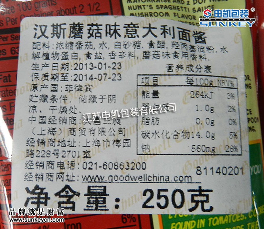 蘑菇味意大利面醬包裝袋