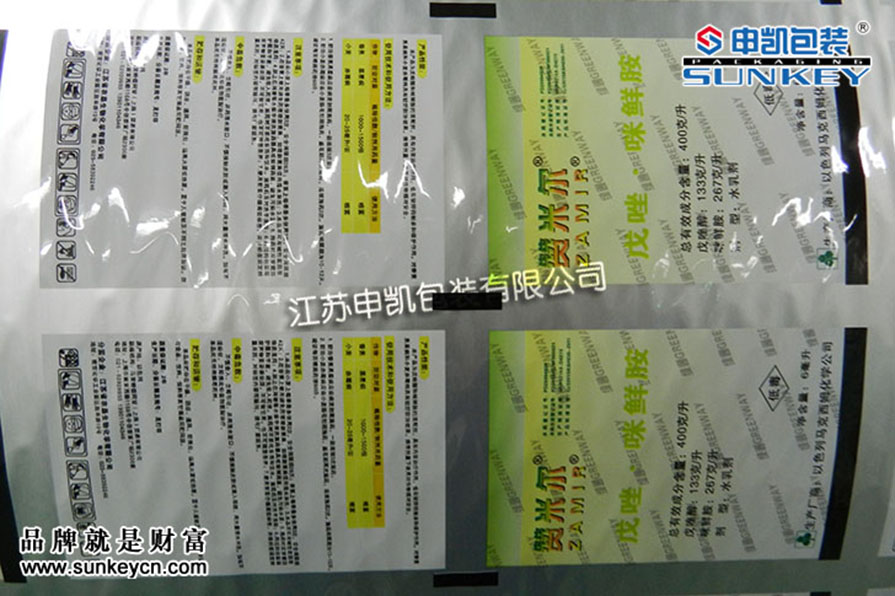 說明:農(nóng)藥鋁箔包裝材質(zhì)一般是由PET/AL/PE組成,經(jīng)過印刷-檢品-復合-分切多層工藝。(農(nóng)藥復合卷膜我們有專門的研發(fā),根據(jù)包裝的產(chǎn)品不同經(jīng)過測試選定包裝)