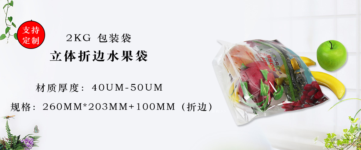 此類水果包裝袋為一種獨立的包裝形式,適合不同種類的水果包裝,可定制1-5kg不等的規(guī)格尺寸。